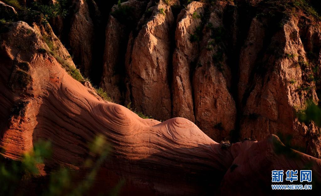 陜西省靖邊縣龍洲鎮波浪谷丹霞景區地處陜北黃土高原,峽谷四面環山,線谷、巷谷、絕壁等構成了特有的波浪形砂巖地貌,景觀獨特。