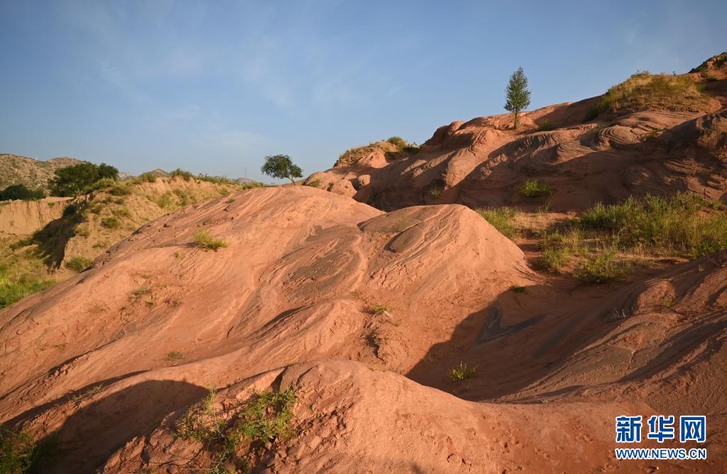 8月6日,朝霞映照下的靖邊縣龍洲鎮(zhèn)波浪谷丹霞景區(qū)。