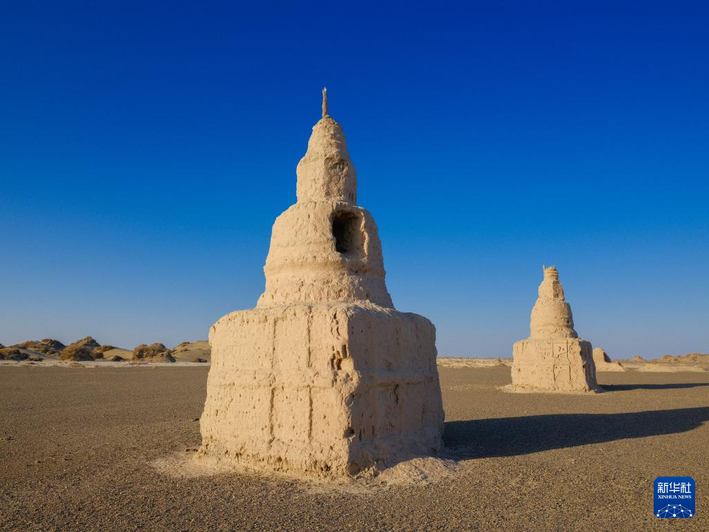 这是11月3日在内蒙古阿拉善盟额济纳旗拍摄的居延遗址中的西夏五塔遗址。