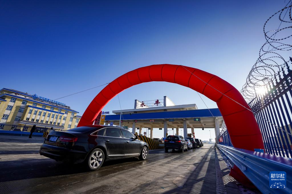 12月26日,车辆通过位于乌鲁木齐县的永丰收费站驶入乌尉高速公路,吸引媒体工作人员关注。
