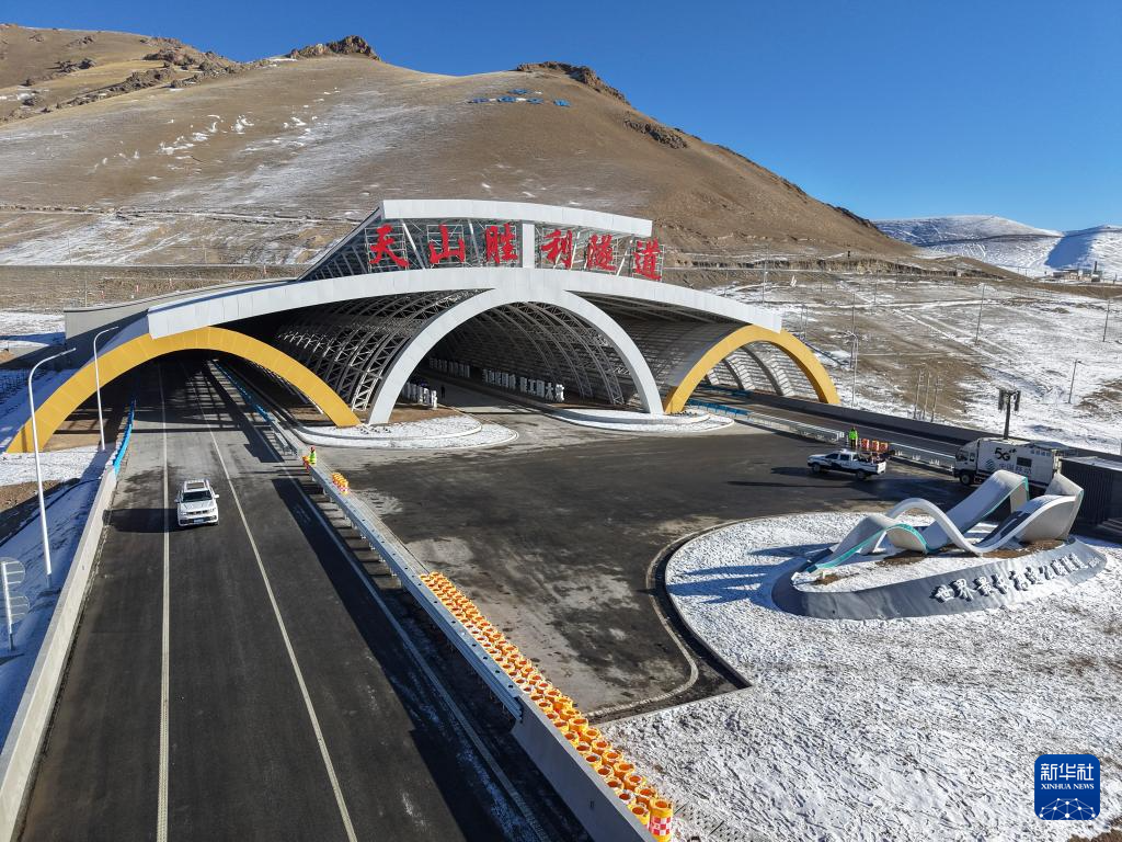 12月26日拍摄的新疆乌尉高速公路天山胜利隧道口(无人机照片)。