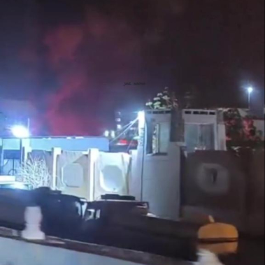 这张视频截图显示,12月30日,在也门哈德拉毛省穆卡拉港,空袭引起大火。