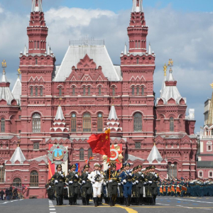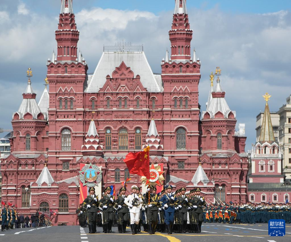 5月9日,在俄罗斯首都莫斯科,中国人民解放军仪仗司礼大队方队参加纪念苏联伟大卫国战争胜利80周年阅兵式。