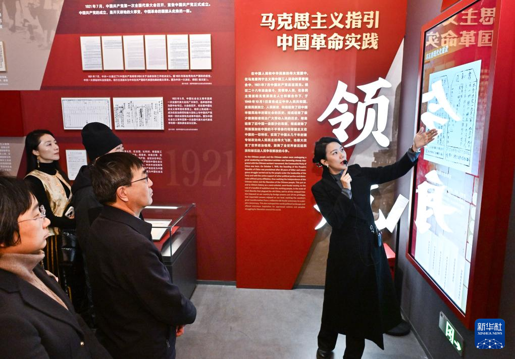 12月31日,讲解员在中国考古博物馆“民族觉醒”展区向参观者介绍展陈内容。