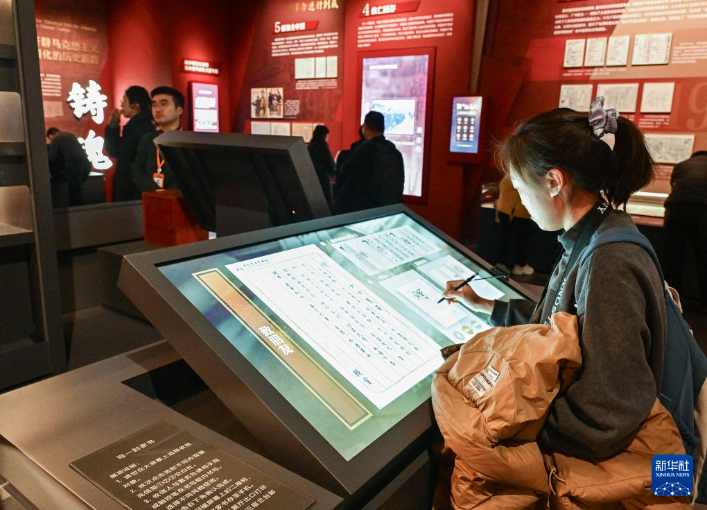 12月31日,参观者在中国考古博物馆“民族觉醒”展区体验交互式展览内容。