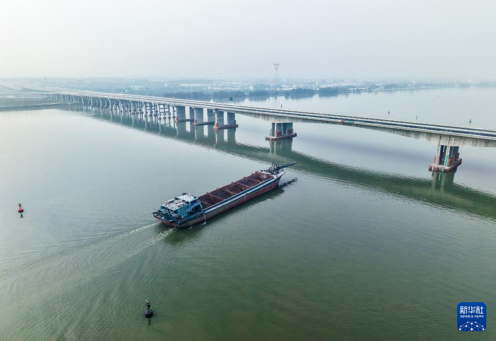 12月31日,船舶通过银洲湖高速公路潭江特大桥主航道(无人机照片)。