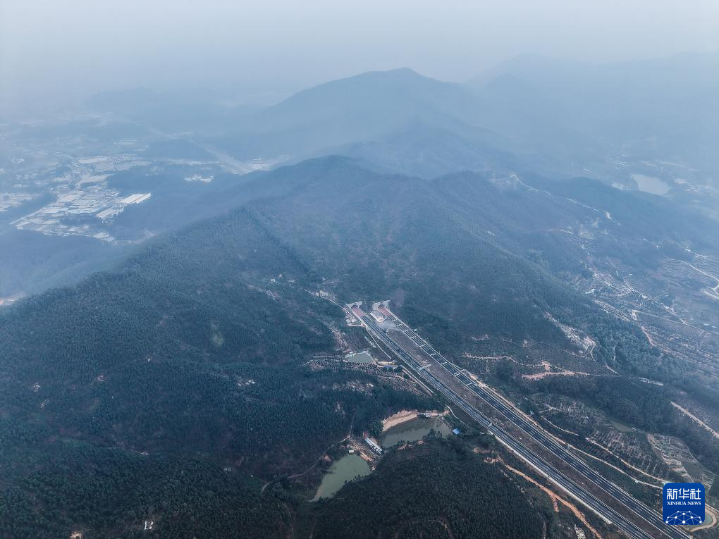 这是12月31日拍摄的银洲湖高速公路圭峰山隧道(无人机照片)。