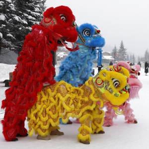 12月31日,游客在黑龙江省牡丹江市的“中国雪乡”景区观看舞狮表演。