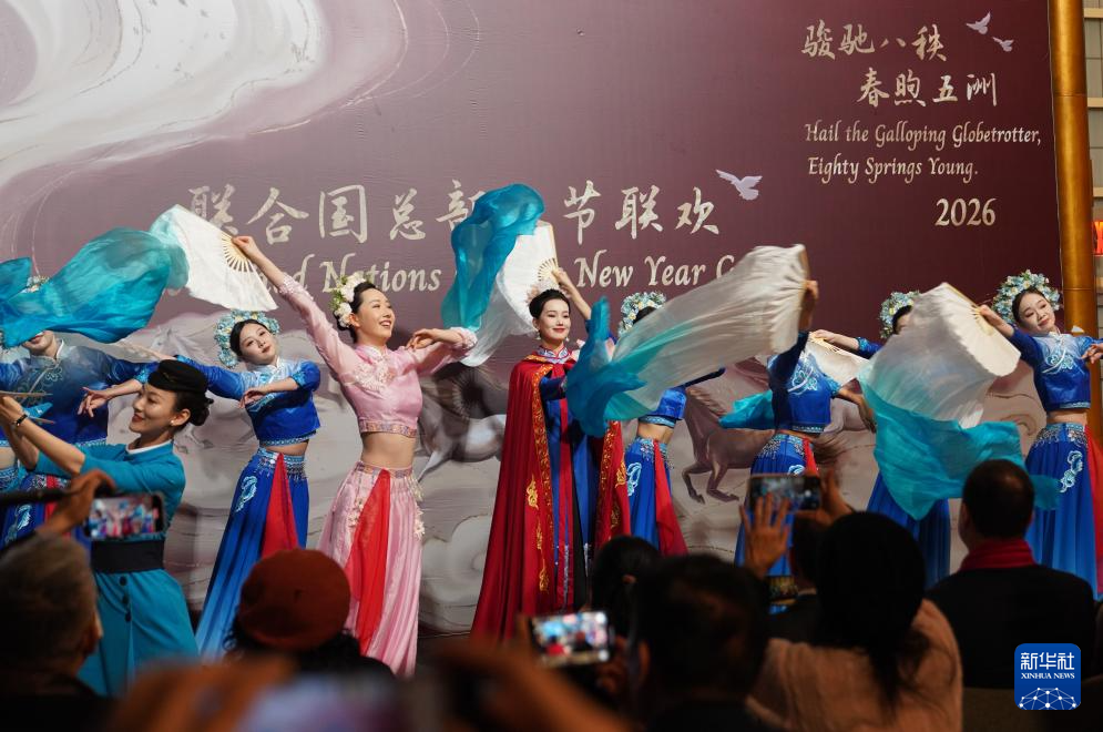 2月12日,在位于纽约的联合国总部,人们在晚会上表演民族舞蹈。