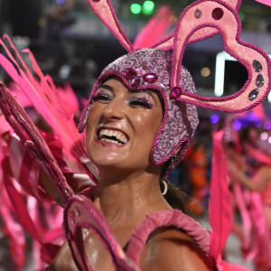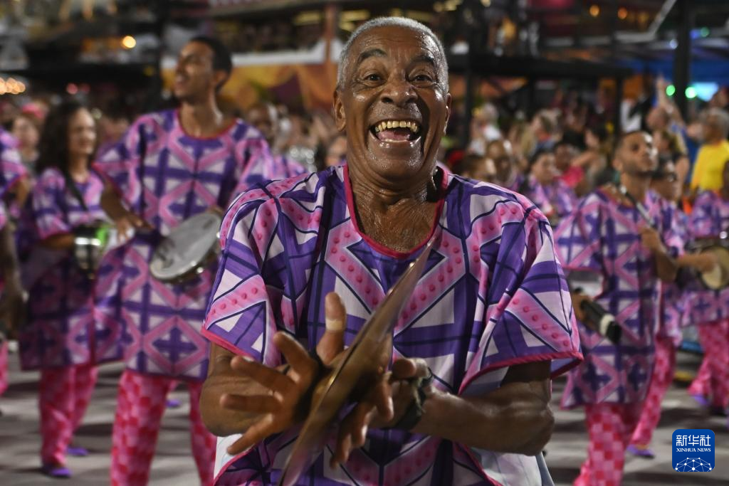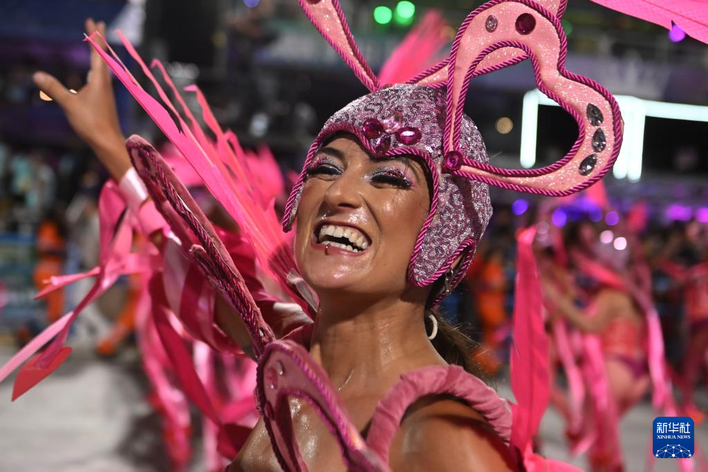 2月13日,桑巴舞者在巴西里约热内卢举行的2026年狂欢节游行中表演。