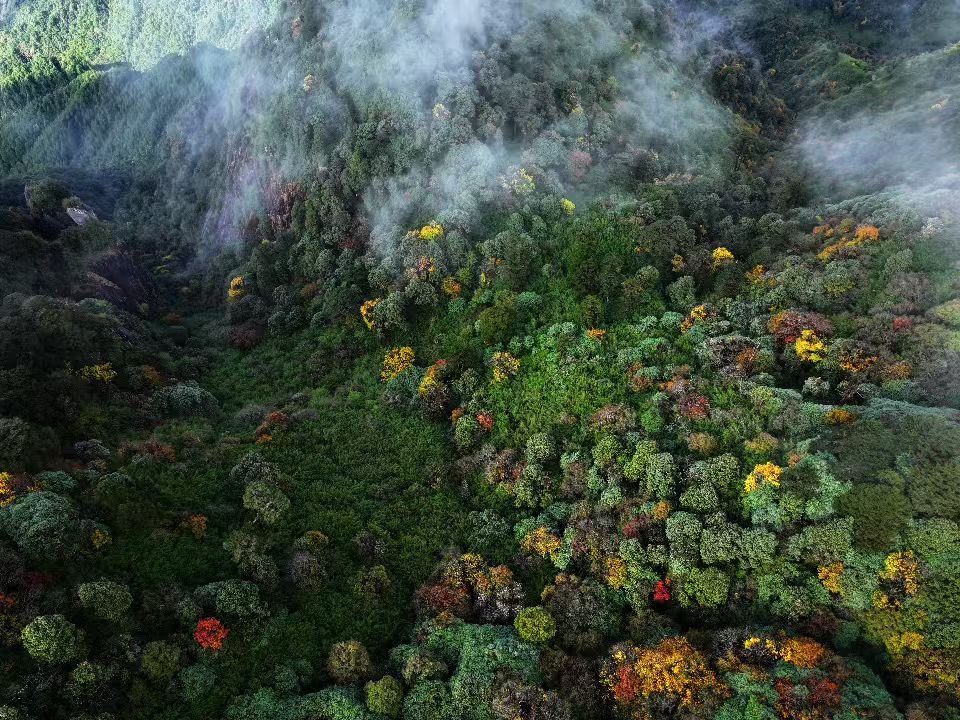 初冬時(shí)節(jié),走進(jìn)云南省騰沖市猴橋鎮(zhèn)輪馬村粉竹壩,層林盡染,五彩斑斕,彩色山林如巨幅油畫(huà)鋪展于群山之間。薄霧繚繞中,山林靜謐而幽遠(yuǎn),構(gòu)成一幅濃墨重彩的冬日畫(huà)卷。
