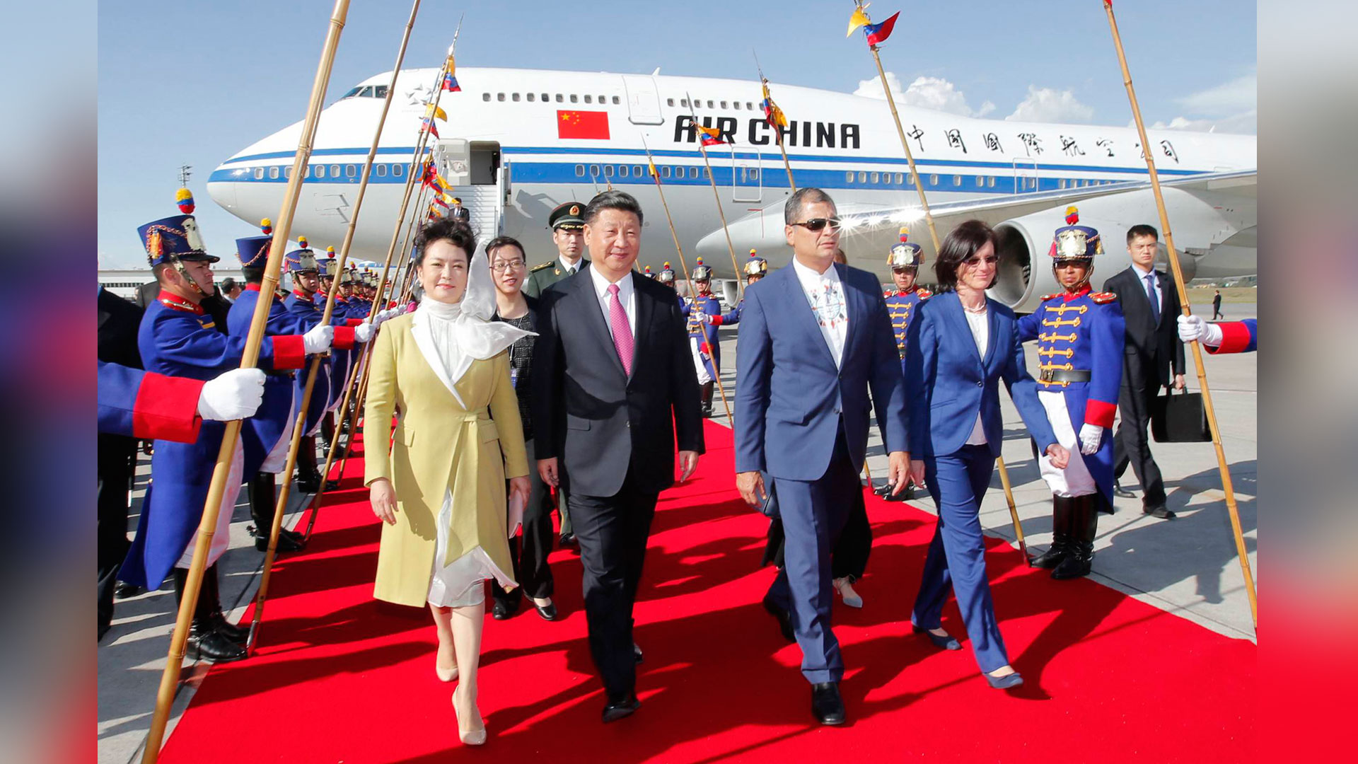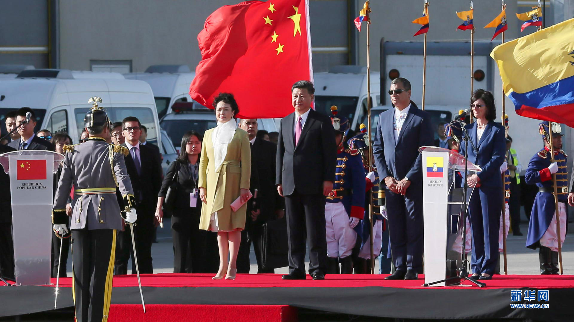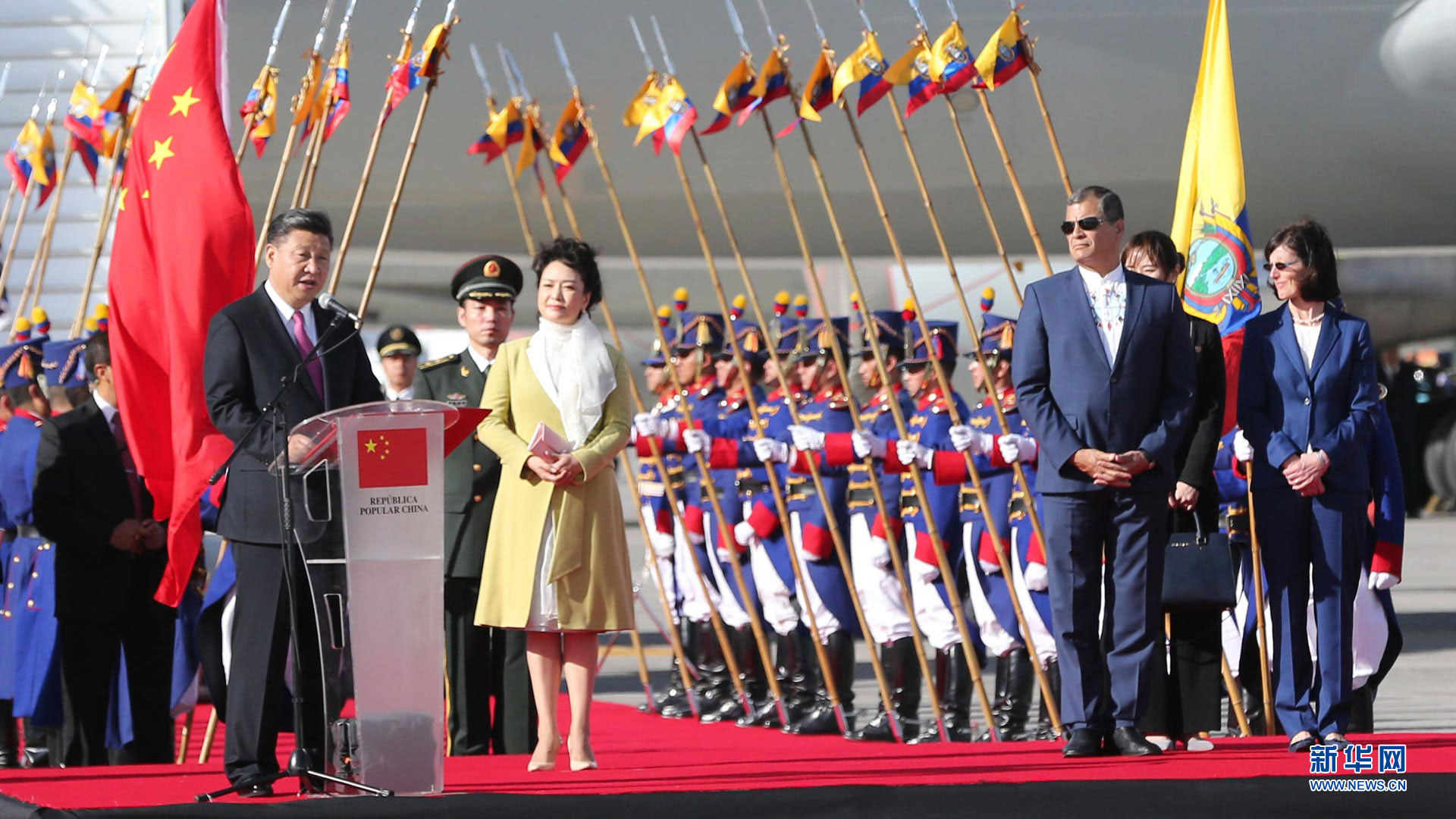 當(dāng)?shù)貢r(shí)間11月17日,國家主席習(xí)近平乘專機(jī)抵達(dá)基多,開始對厄瓜多爾共和國進(jìn)行國事訪問。厄瓜多爾總統(tǒng)科雷亞和夫人馬勒布等在機(jī)場熱情迎接習(xí)近平和夫人彭麗媛。新華社記者 鞠鵬 攝2016-11-18