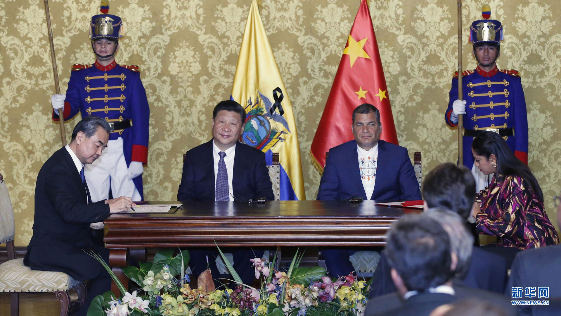 當(dāng)?shù)貢r(shí)間11月17日,國家主席習(xí)近平在基多同厄瓜多爾總統(tǒng)科雷亞舉行會(huì)談。 新華社記者 鞠鵬 攝2016-11-18