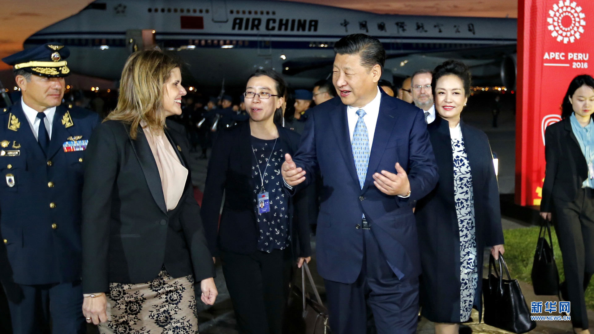 當(dāng)?shù)貢r(shí)間11月18日,國家主席習(xí)近平抵達(dá)利馬,出席亞太經(jīng)合組織第二十四次領(lǐng)導(dǎo)人非正式會(huì)議并對秘魯共和國進(jìn)行國事訪問。習(xí)近平和夫人彭麗媛受到秘魯副總統(tǒng)阿勞斯等熱情迎接。新華社記者 丁林 攝2016-11-20