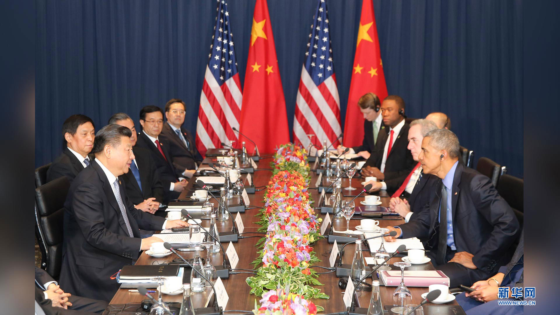 11月19日,國家主席習(xí)近平在利馬會(huì)見美國總統(tǒng)奧巴馬。 新華社記者丁林 攝2016-11-20
