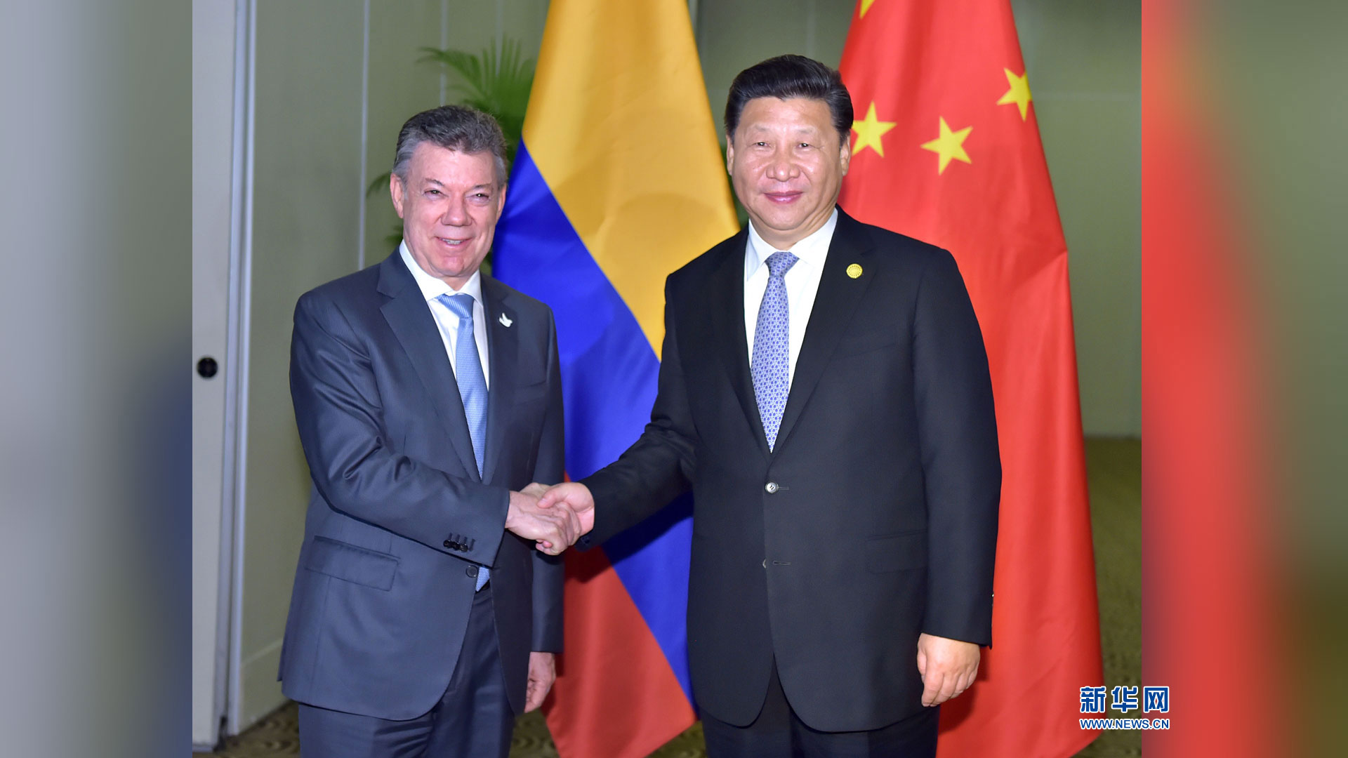 11月19日,國家主席習(xí)近平在利馬會(huì)見哥倫比亞總統(tǒng)桑托斯。新華社記者 李濤 攝2016-11-20