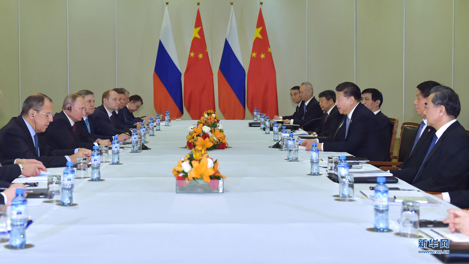 11月19日,國家主席習(xí)近平在利馬會(huì)見俄羅斯總統(tǒng)普京。 新華社記者李濤 攝2016-11-20