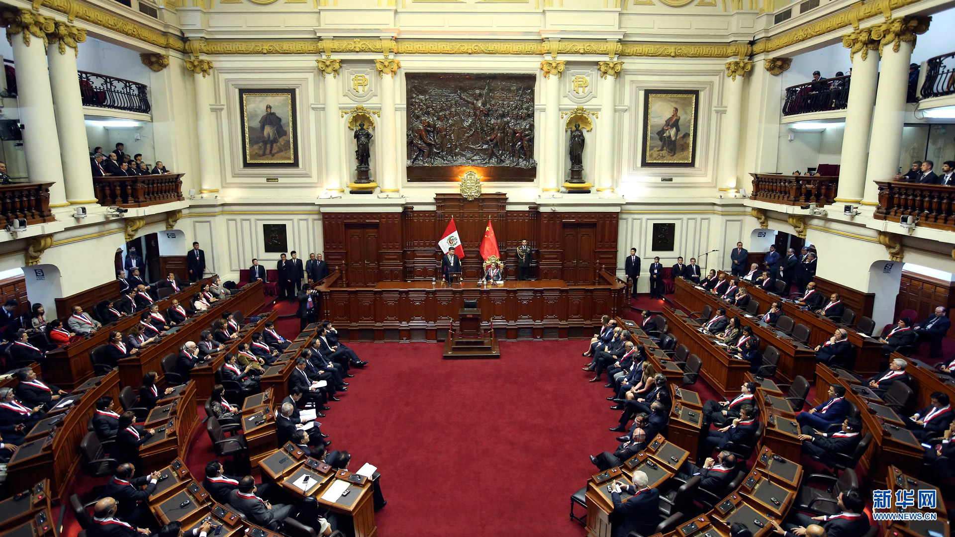 11月21日,國家主席習(xí)近平在秘魯國會(huì)發(fā)表題為《同舟共濟(jì)、揚(yáng)帆遠(yuǎn)航,共創(chuàng)中拉關(guān)系美好未來》的重要演講。 新華社記者 龐興雷 攝2016-11-22