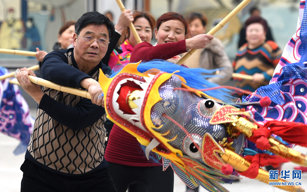 1月15日,閆克元在展示他收集的有關龍的藏品。陜西省漢中市漢臺區龍江文化站黨支部書記閆克元,經過十幾年努力與探索,傳承發展當地的舞龍技藝,豐富基層群眾精神文化生活,帶動村民發展文化產業,被鄉親們親切地稱為“龍的傳人”。 2003年,閆克元牽頭成立“龍江飛龍藝術團”。他130余次登門拜訪當地50多名制作龍舞道具、表演龍舞技藝的老藝人,用錄音、錄像、拍照等形式整理出大量資料,并通過展覽和培訓進行推廣。藝術團由成立最初的50人壯大到如今的200多人,年演出180余場,表演節目從單一的舞龍發展到彩龍、草龍、板凳龍等龍舞系列節目,演出范圍從漢中擴展到省內外。在他的推動下,龍江鎮26個村先后建起了民間藝術表演隊,表演內容涵蓋舞龍、舞獅、社火、彩船、大秧歌等十幾個種類,每年演出超過700場。新華社記者 陶明 攝