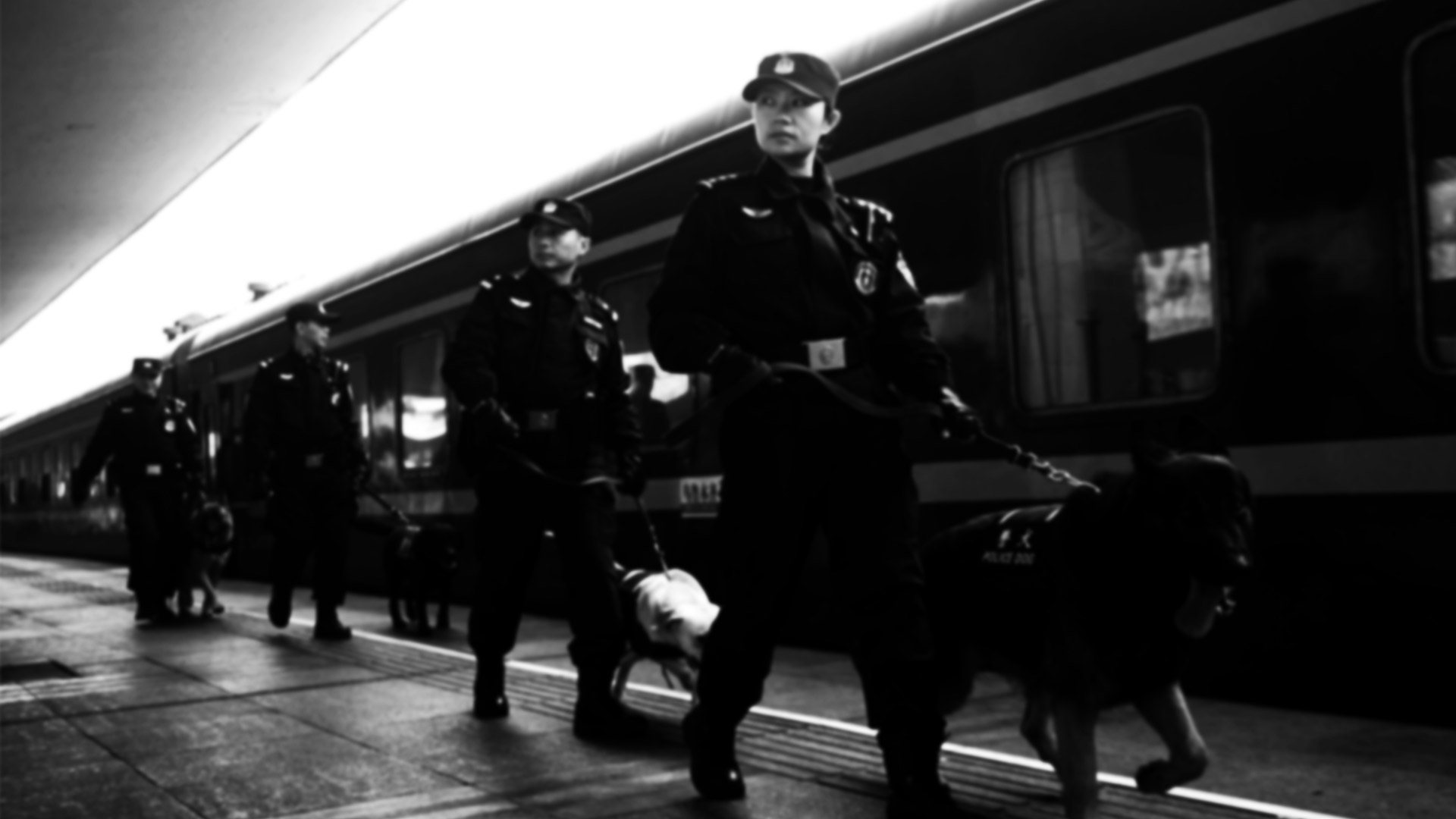 2月5日,劉慧和“威利”在車站行李房進行搜查。新華社記者 程敏 攝