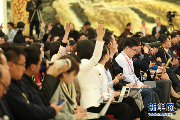 2017年10月17日下午,中國共產黨第十九次全國代表大會新聞發言人在人民大會堂三樓金色大廳舉行新聞發布會,并回答中外記者提問。新華網 翟子赫 攝