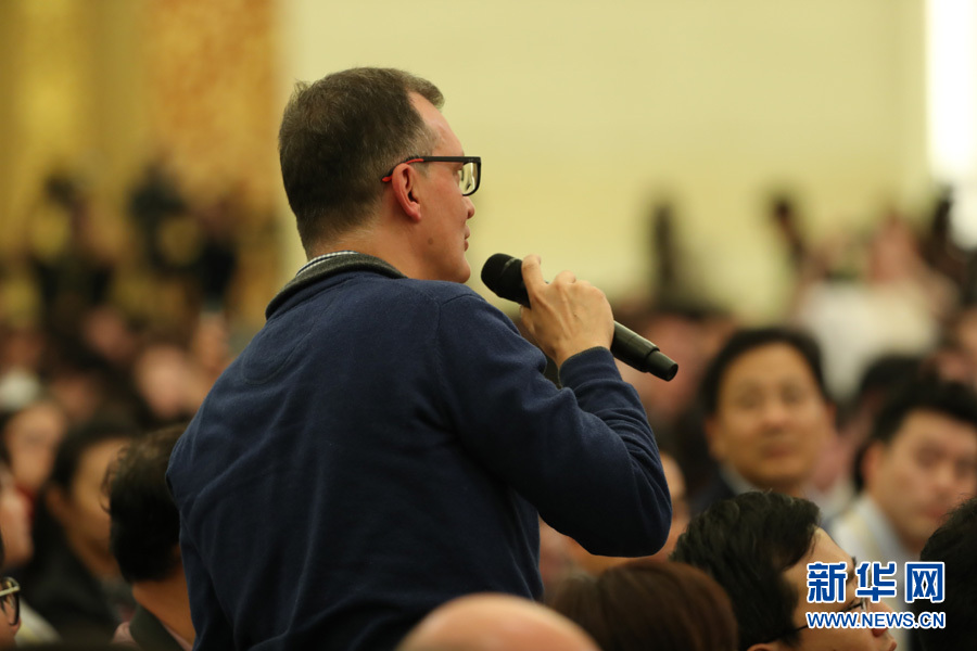 2017年10月17日下午,中國共產(chǎn)黨第十九次全國代表大會新聞發(fā)言人在人民大會堂三樓金色大廳舉行新聞發(fā)布會,并回答中外記者提問。圖為埃菲社記者提問。新華網(wǎng) 翟子赫 攝