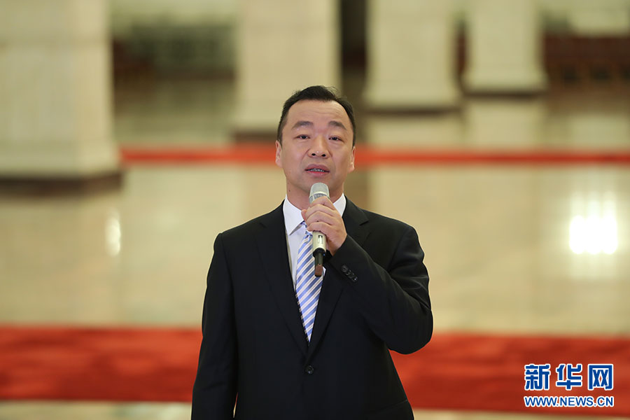 10月19日,“黨代表通道”第二場采訪活動在人民大會堂舉行。圖為現場主持人。新華網 翟子赫 攝