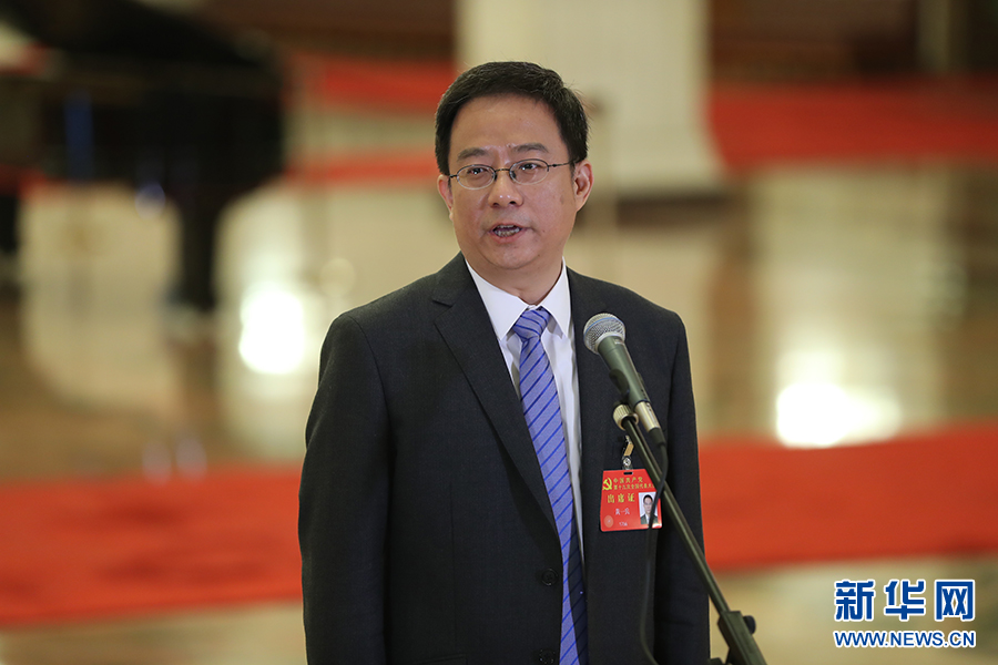 10月19日,“黨代表通道”第二場采訪活動在人民大會堂舉行。圖為黃一兵代表接受采訪。新華網 翟子赫 攝