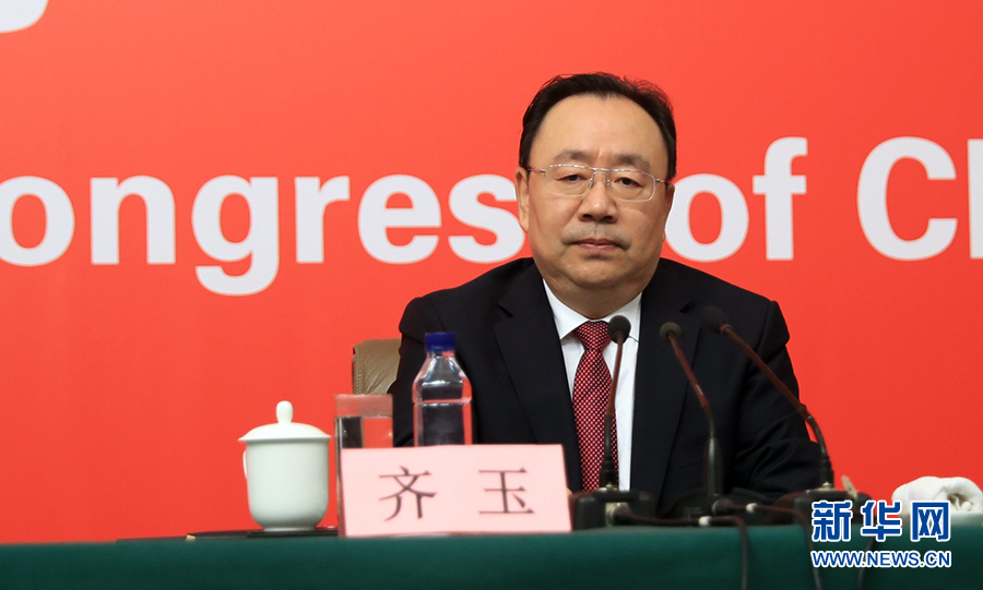 ??? 10月19日,十九大新聞中心舉行記者會(huì),邀請(qǐng)中紀(jì)委、中組部負(fù)責(zé)人介紹黨的建設(shè)和全面從嚴(yán)治黨相關(guān)情況。圖為中共中央組織部副部長(zhǎng)齊玉。新華網(wǎng) 郝廣鵬攝
