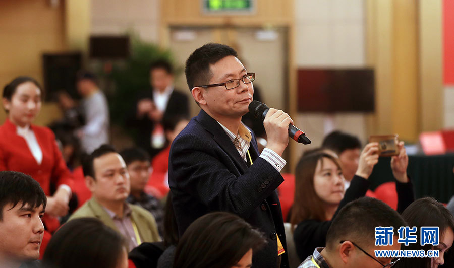 ??? 10月19日,十九大新聞中心舉辦集體采訪,邀請政法戰線代表談全面推進依法治國。圖為黨建雜志、黨建網記者提問。新華網 郝廣鵬攝