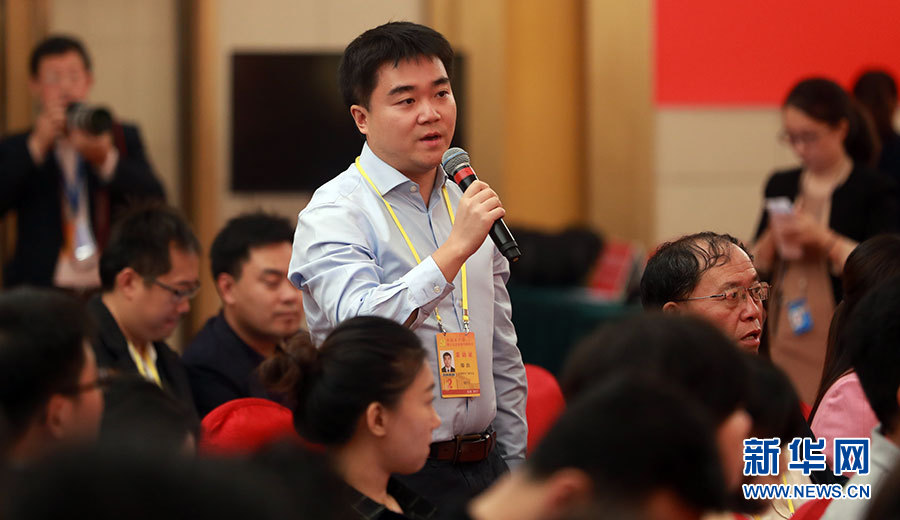 ??? 10月19日,十九大新聞中心舉辦集體采訪,邀請工信和通訊領域代表談走新型工業化道路。圖為中國國際廣播電臺記者提問。新華網 郝廣鵬攝