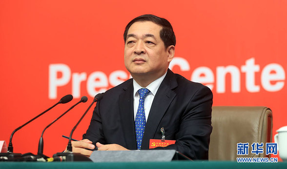 10月19日,十九大新聞中心舉辦集體采訪,邀請(qǐng)工信和通訊領(lǐng)域代表談走新型工業(yè)化道路。圖為山東省經(jīng)濟(jì)和信息化委員會(huì)黨組書記、主任錢煥濤。新華網(wǎng) 郝廣鵬攝