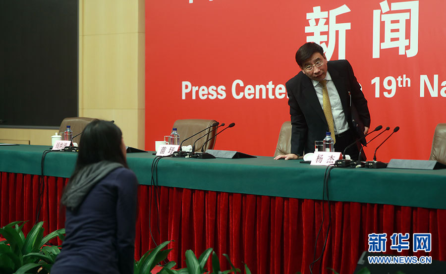 10月19日,十九大新聞中心舉辦集體采訪,邀請工信和通訊領(lǐng)域代表談走新型工業(yè)化道路。圖為集體采訪活動(dòng)現(xiàn)場。新華網(wǎng) 郝廣鵬攝