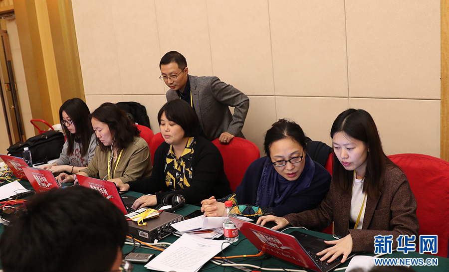 ??? 10月20日,十九大新聞中心舉辦集體采訪活動,主題為“文化發(fā)展開創(chuàng)新局面”。圖為新華網(wǎng)在現(xiàn)場直播。新華網(wǎng) 陳杰攝