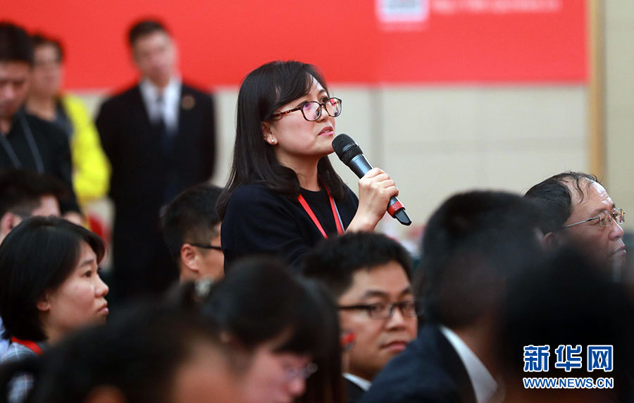 ??? 10月20日,十九大新聞中心舉辦集體采訪活動,主題為“文化發展開創新局面”。圖為中央人民廣播電臺記者提問。新華網 陳杰攝