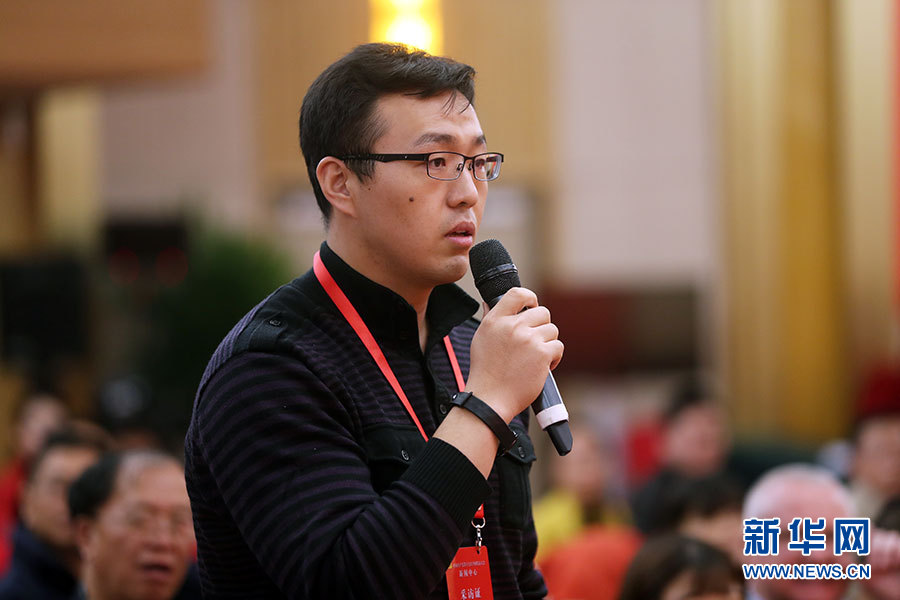 ??? 10月20日,十九大新聞中心舉辦集體采訪活動,主題為“實施創新驅動發展戰略”。圖為中國建材報記者提問。新華網 郝廣鵬攝