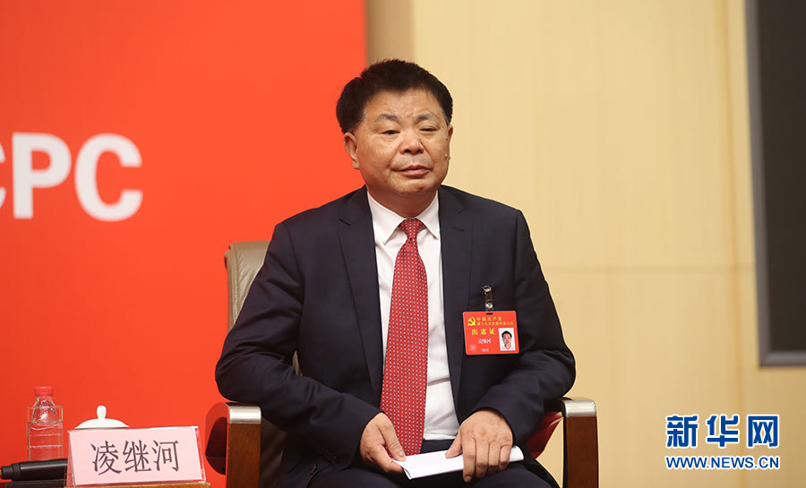 10月21日,十九大新聞中心舉辦集體采訪活動,主題為“農(nóng)業(yè)科技創(chuàng)新”。圖為江西省安義縣種糧大戶、綠能農(nóng)民專業(yè)合作社黨支部書記凌繼河。新華網(wǎng) 郝廣鵬攝