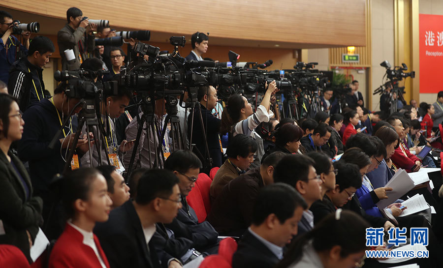 10月22日,十九大新聞中心舉辦記者招待會(huì),邀請(qǐng)教育部黨組書(shū)記、部長(zhǎng)陳寶生,民政部黨組書(shū)記、部長(zhǎng)黃樹(shù)賢,人力資源社會(huì)保障部黨組書(shū)記、部長(zhǎng)尹蔚民,住房城鄉(xiāng)建設(shè)部黨組書(shū)記、部長(zhǎng)王蒙徽,國(guó)家衛(wèi)生計(jì)生委黨組書(shū)記、主任李斌介紹滿(mǎn)足人民新期待,保障改善民生有關(guān)情況,并回答記者提問(wèn)。圖為現(xiàn)場(chǎng)記者。新華網(wǎng) 郝廣鵬攝