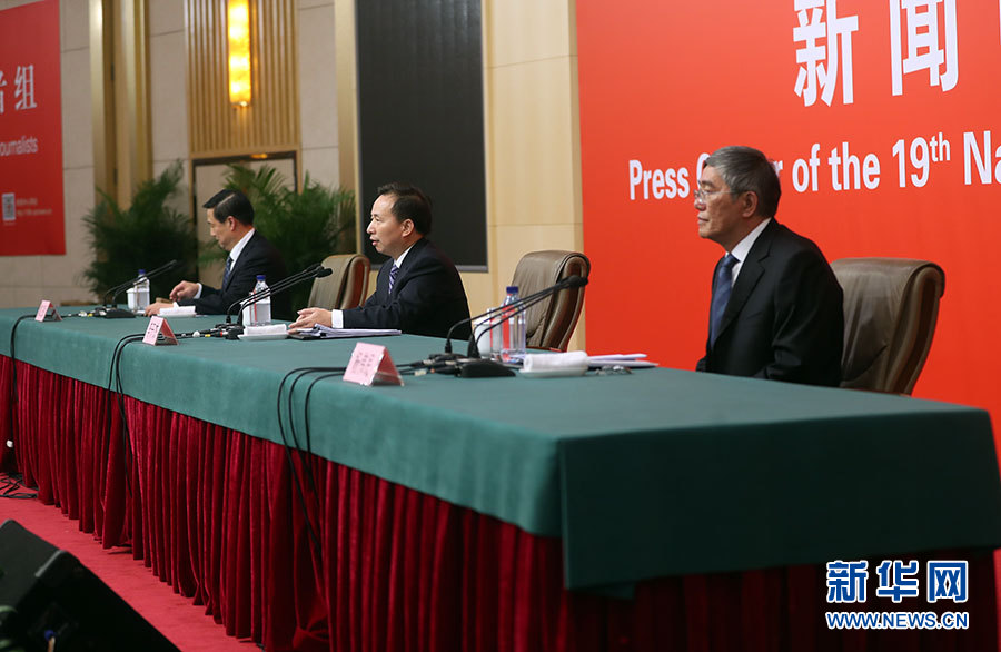 10月23日,十九大新聞中心舉辦記者招待會(huì),邀請(qǐng)中央財(cái)經(jīng)領(lǐng)導(dǎo)小組辦公室副主任楊偉民,環(huán)境保護(hù)部黨組書記、部長(zhǎng)李干杰介紹踐行綠色發(fā)展理念,建設(shè)美麗中國(guó)有關(guān)情況,并回答記者提問(wèn)。圖為記者招待會(huì)現(xiàn)場(chǎng)。新華網(wǎng) 郝廣鵬攝