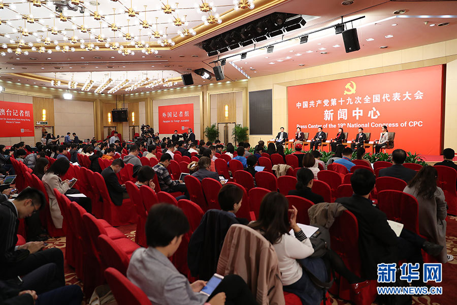 10月23日,十九大新聞中心舉辦集體采訪活動,主題為“打好生態環保攻堅戰”。圖為集體采訪活動現場。新華網 郝廣鵬攝