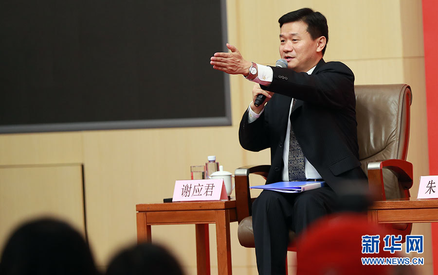 10月23日,十九大新聞中心舉辦集體采訪活動,主題為“打好生態(tài)環(huán)保攻堅戰(zhàn)”。圖為主持人謝應君。新華網(wǎng) 郝廣鵬攝