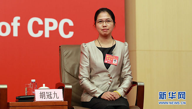 10月23日,十九大新聞中心舉辦集體采訪活動,主題為“打好生態環保攻堅戰”。圖為江蘇省環境監測中心副主任胡冠九。新華網 郝廣鵬攝
