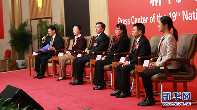 10月23日,十九大新聞中心舉辦集體采訪活動,主題為“打好生態環保攻堅戰”。圖為集體采訪活動現場。新華網 郝廣鵬攝