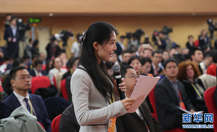 ? 10月26日上午10:00,中國(guó)共產(chǎn)黨第十九次全國(guó)代表大會(huì)新聞發(fā)言人在梅地亞賓館二層新聞發(fā)布廳召開專題新聞發(fā)布會(huì),請(qǐng)有關(guān)方面負(fù)責(zé)人解讀十九大報(bào)告,并回答記者關(guān)心的問題。圖為中央人民廣播電臺(tái)記者提問。新華網(wǎng) 王成云 攝
