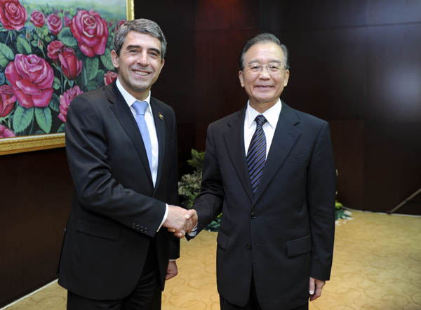 ????在會見普列夫內利耶夫時,溫家寶表示,保加利亞是最早承認中華人民共和國的國家之一。建交63年來,雙方相互尊重,平等相待,傳統友誼得到鞏固和發展。保加利亞在國際金融危機中堅持市場開放,積極吸引外資,這為中保擴大互利合作提供了有利條件。中國政府鼓勵本國企業赴保加利亞投資,在中國與中東歐合作框架下就確定和實施有關項目加強磋商,爭取早日見到成效。雙方要共同努力,加強政治、文化、社會等領域交流,全面推進兩國友好關系。