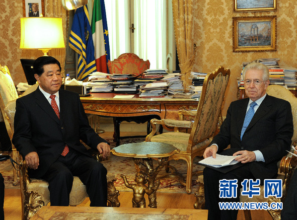 賈慶林會見意大利總理蒙蒂