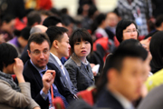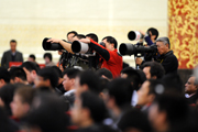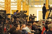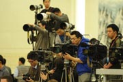 外國媒體記者在會(huì)場(chǎng)做好準(zhǔn)備