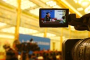 新華網(wǎng)、中國政府網(wǎng)直播工作人員在現(xiàn)場(chǎng)準(zhǔn)備就緒