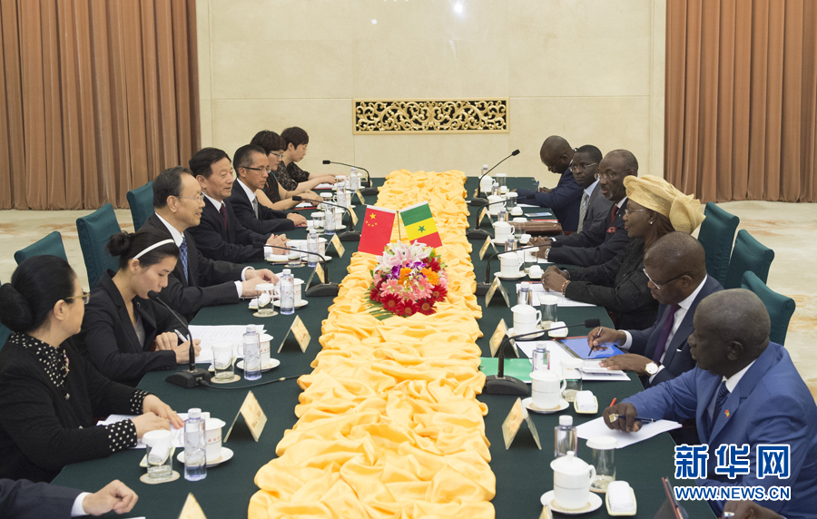 ??? 6月1日,中共中央書記處書記、全國政協副主席、中國經濟社會理事會主席杜青林在北京與塞內加爾經濟、社會和環境理事會主席塔勒舉行會談。新華社記者王曄攝