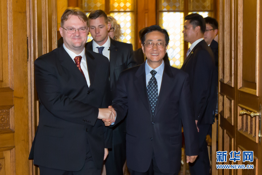 ??? 9月11日,中共中央書(shū)記處書(shū)記、中央紀(jì)委副書(shū)記趙洪祝(右)在布達(dá)佩斯會(huì)見(jiàn)匈牙利司法部國(guó)務(wù)秘書(shū)雷帕希。應(yīng)匈牙利執(zhí)政黨青民盟邀請(qǐng),中共中央書(shū)記處書(shū)記、中央紀(jì)委副書(shū)記趙洪祝率中共代表團(tuán)于9月10日至11日訪問(wèn)匈牙利。新華社發(fā)(弗爾季·奧蒂洛攝)